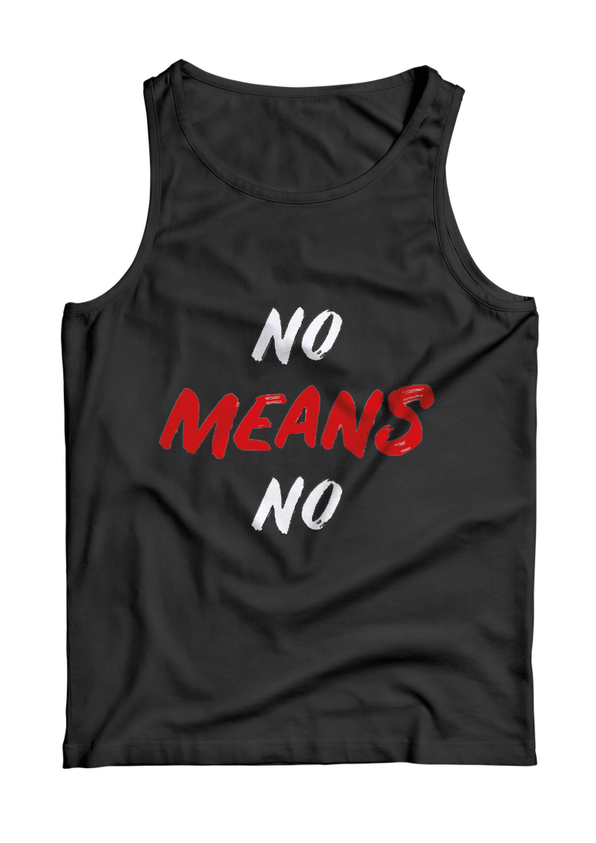 No Means No logo branded vest top, cotton blend with white/red vinyl.