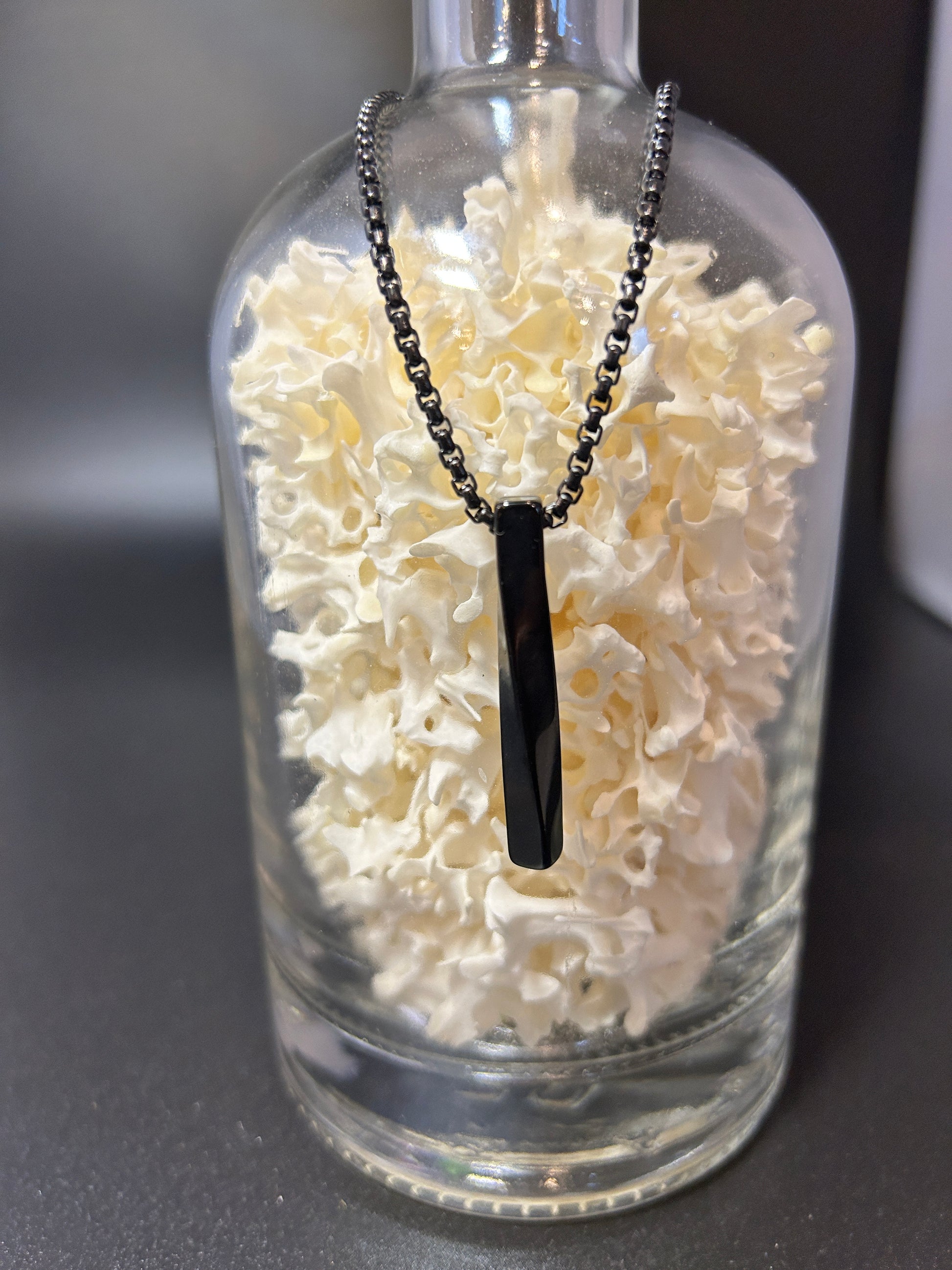 Made with stainless steel, this Black Twisted Rectangle, suitable for any gender with a 23.5 inch black metal chain.