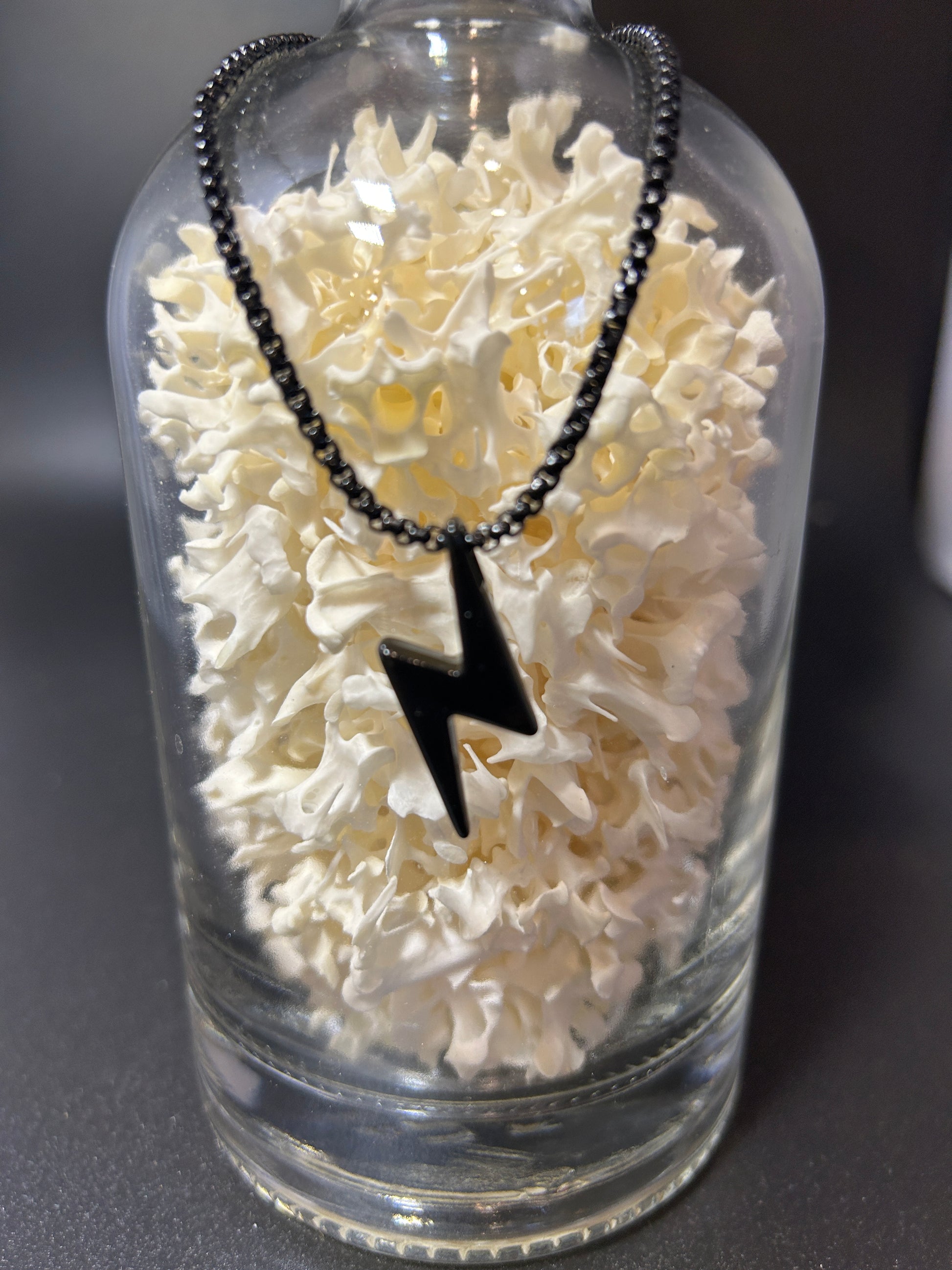 Made with stainless steel, this Black Lightning Bolt, suitable for any gender with a 23.5 inch black metal chain.