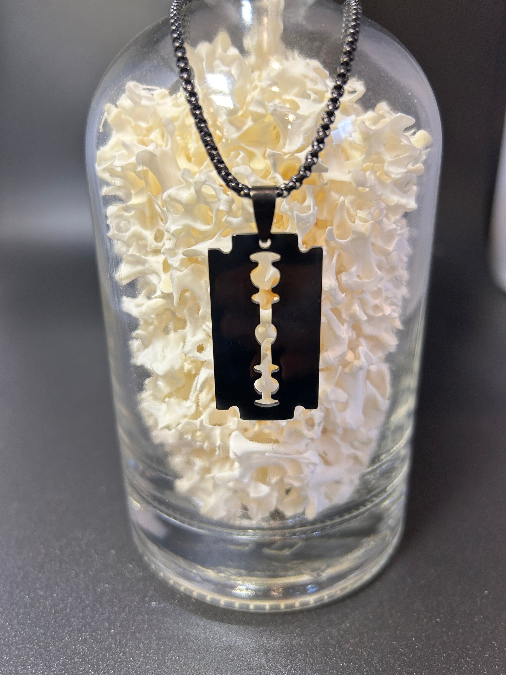 Made with stainless steel, this Black Razor Blade, suitable for any gender with a 23.5 inch black metal chain.